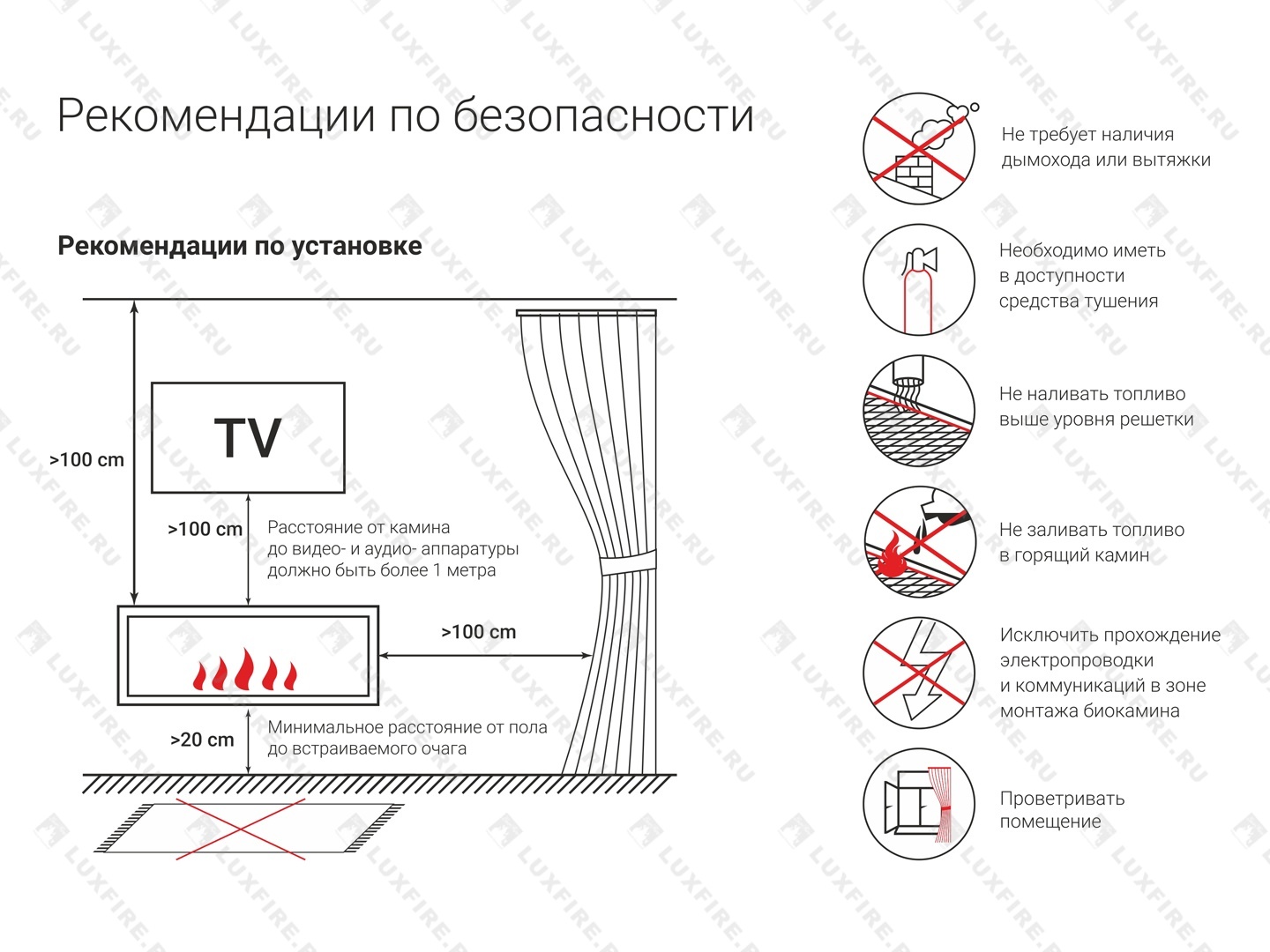 Адаптивен к каминным порталам и аналогам электрокаминов популярных марок.
